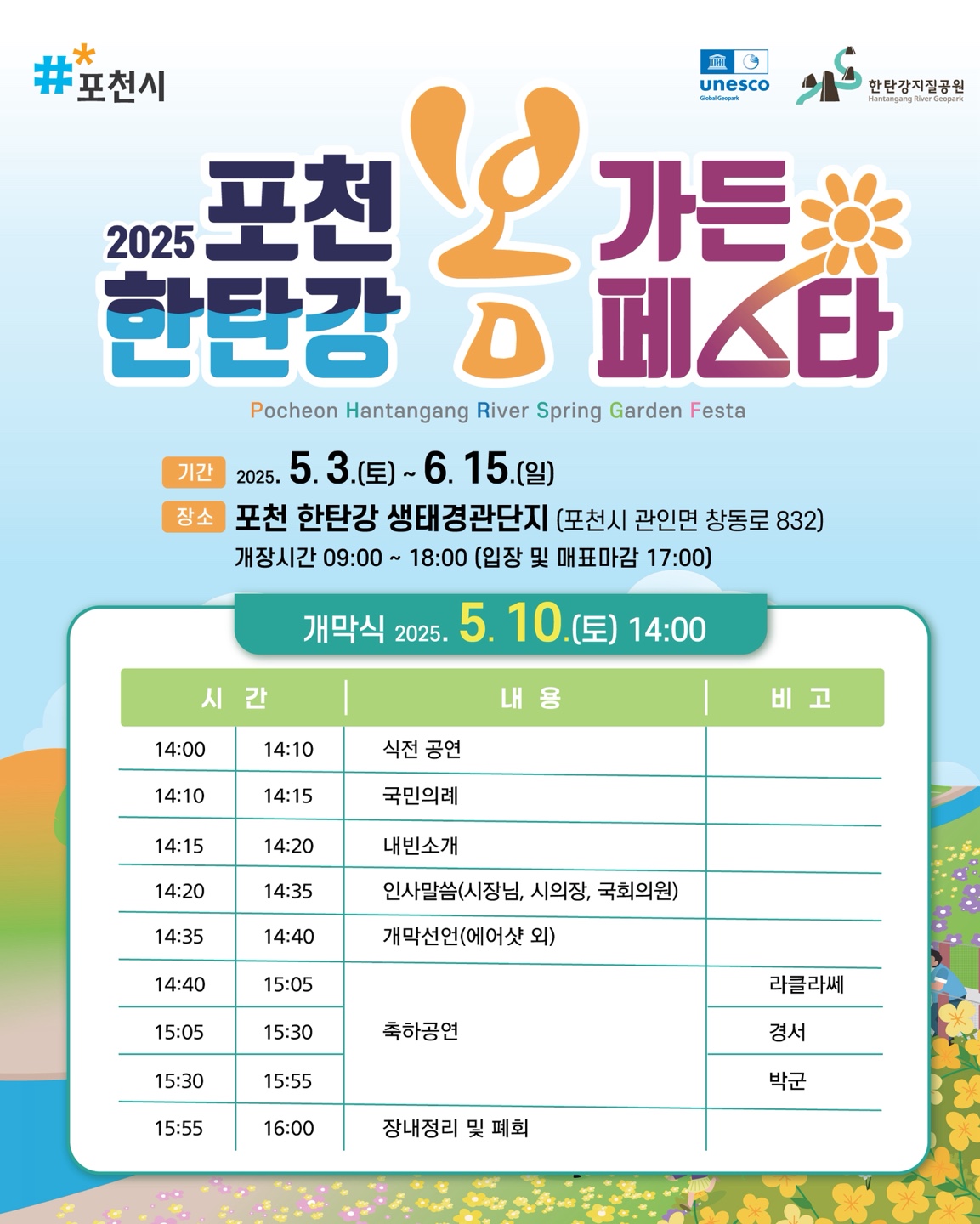 🌷 포천 한탄강 봄 가든 페스타 개막식 일정 및 출연가수